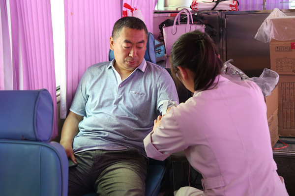 献血车上,经过心跳、血压、脉搏检测及相关信息询问,通过健康检测后,进入献血区,浸透着拳拳爱心的血液缓缓流入献血袋,袋袋鲜血,盛满了我院教职工的浓浓爱心和对生命的尊重,彰显了学院人的热情和爱心。