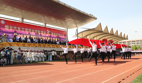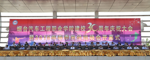 在全院上下奋力冲刺名校建设、喜迎建校三十周年之际,我院建校三十周年庆祝大会暨2015年春季田径运动会开幕式于5月13日下午在学院体育场隆重举行。体育场内彩旗招展,处处洋溢着热烈欢快的喜庆氛围。学院领导出席大会并在主席台就座,大会还特邀学院老领导、驻烟部队首长、企业界人士及新闻界朋友一同出席。庆祝大会暨开幕式由党委副书记、副院长于波主持。