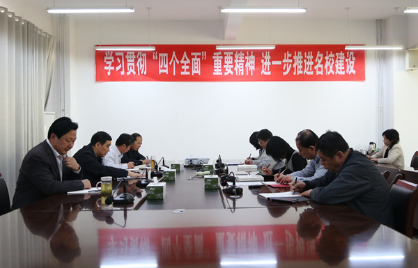 会上,尹桂瓒院长首先领学了习近平总书记关于“四个全面 ”战略布局的重要思想。他全面系统地阐释了“四个全面”重要思想的主要内容,并对“四个全面”的特征和意义进行了深刻阐述。他强调指出,“四个全面”是以习近平同志为总书记的党中央从坚持和发展中国特色社会主义全局出发提出的战略布局,是党中央治国理政的总方略,是实现“两个一百年”奋斗目标、走向中华民族伟大复兴中国梦的“路线图”,也是对治国理政实践的新总结、认识的新境界、工作的新要求,是我们全部工作的总遵循、总抓手、总方略。“四个全面”的每个“全面”都有各自丰富的思想内涵,各个“全面”之间又有紧密的内在逻辑联系和辩证的统一关系,实现中华民族伟大复兴中国梦是战略目标,全面建成小康社会是我们实现社会主义现代化和中华民族伟大复兴中国梦的关键一步,另外三个“全面”是重大举措,其中全面深化改革是强大动力,全面依法治国是重要保障,全面从严治党是根本保证。他特别强调,我们要全面理解、牢牢把握“四个全面”的深刻内涵,牢牢把握“四个全面”的内在联系,将“四个全面”始终贯穿于实际工作中。他最后结合工作提出贯彻落实要求:一是要认真学习、全面把握;二是基础课教学要落实到课堂;三是宣传部门要研究思想政治工作,并注重创新方式方法;四是要形成工作指导。要落实到技能型人才培养、名校建设、专业和课程建设等各个方面;五是要深化改革。要深化教育教学、人才培养和管理方式改革,通过改革调动广大教职工的积极性;六是要加强制度建设。切实做到有法可依,有章必循,形成以制度管人、按制度办事的工作机制等。