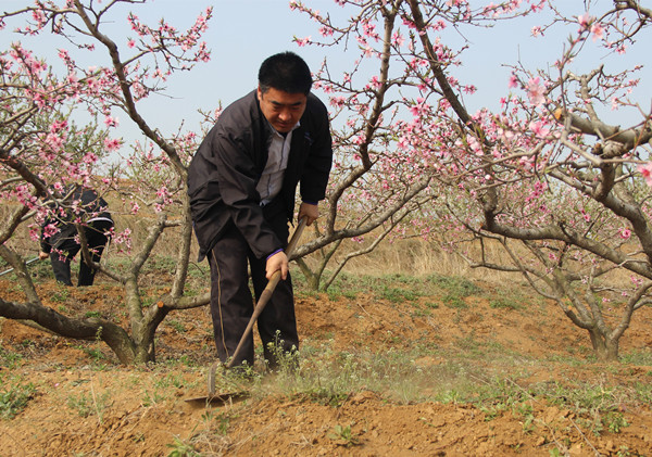 联户干部在果园除草