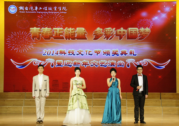 12月26日下午,我院在报告厅隆重举行“青春正能量 多彩中国梦”烟台汽车工程职业学院2014科技文化节颁奖典礼暨迎新年文艺演出,院长尹桂瓒,党委副书记、副院长于波,副院长孙涛、姜义昌,上海通用东岳汽车有限公司等8家合作企业嘉宾出席典礼并为艺术节获奖选手、先进个人及优秀组织单位颁奖。我院副科级以上领导干部、团总支书记、副书记,专门从事学生工作的辅导员及优秀学生代表参加了典礼。