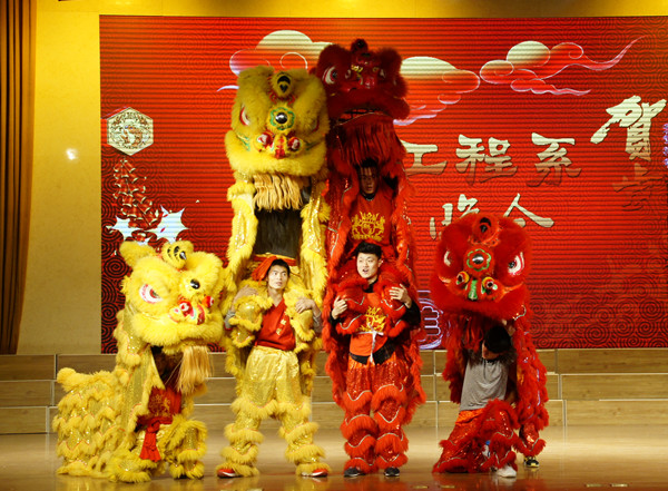 节目开始,系主任邹德伟首先致新年贺词,总结过去展望未来,开启新年新篇章。“瑞狮颂欢歌,舞出中华梦”,生动的《醒狮》表演将温馨喜庆气氛点燃;铿锵有力的歌声表达着兄弟们的友谊;各种现代舞充分展现了学子们魅力四射的青春;优美的礼仪表演,将国人彬彬有礼的风貌做了完美的展现;《B-box》口技表演赢得了热烈的掌声;一首《风吹麦浪》将教师的温柔体现;《双截棍》的刚柔并济将中华武术溶于短小精悍;《京剧》选段将中华国粹完美演绎;大合唱《走向复兴》将晚会推向了高潮。最后,晚会在《明天会更好》的未来憧憬中落下帷幕。