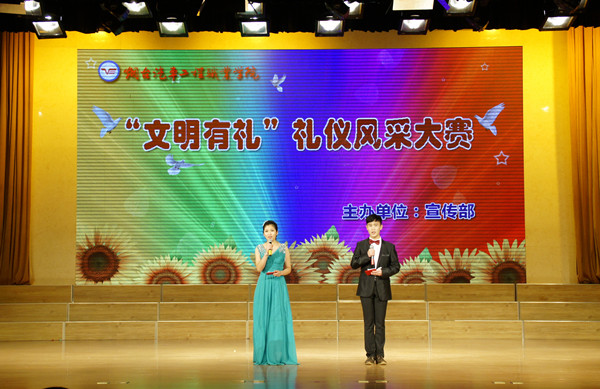 为弘扬中国传统礼仪文化,推广现代文明礼仪规范,扎实开展文明礼仪教育及实践,有效引导广大同学用礼仪规范言行举止,积极践行文明行为,提升全院学生整体文明素质,促进学院精神文明建设,经过精心筹备,12月18日下午,由学院宣传部主办,学院2014“文明有礼”礼仪风采大赛在学院报告厅如期举行,由初赛脱颖而出的7支参赛队伍挺进了决赛,学院各系精神文明委员会成员和特邀评委现场观看了比赛。