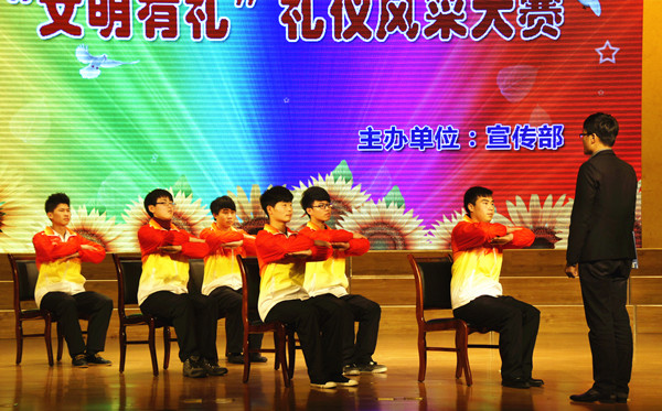 比赛以系为单位进行“文明有礼”风采展示,风采展示项目包括基本礼仪、师生互动礼仪、交往礼仪及附加项目四部分,其中基本礼仪、师生互动礼仪、交往礼仪表演时间控制在15分钟时长内,附加项目表演时间控制在5分钟时长内。每系自配解说员解说,解说词需反映系部特色。各队服装要体现大学生青春活力和学院的红蓝元素。比赛对各种礼仪姿态都制定了详尽的评分标准。比赛中选手言谈举止尽显优雅端庄,举手投足传递礼貌谦和,展示了较高的礼仪素养,为学院“弘扬中国传统文化,推广文明礼仪规范”将起到积极的示范和引领作用。