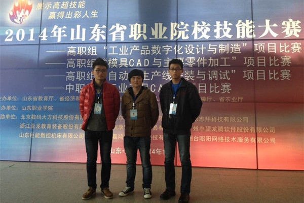 在赵明、初钧亮老师的指导下,三位参赛选手在“复杂零部件数控加工”项目中,团结协作,在零件加工与装配、造型与CAD绘图、自行设计件设计工艺创新设计以及现场操作各个环节中发挥出色,凭借雄厚的实力,最终取得了山东省第二名、省级一等奖的优异成绩。