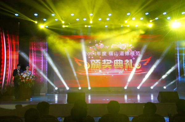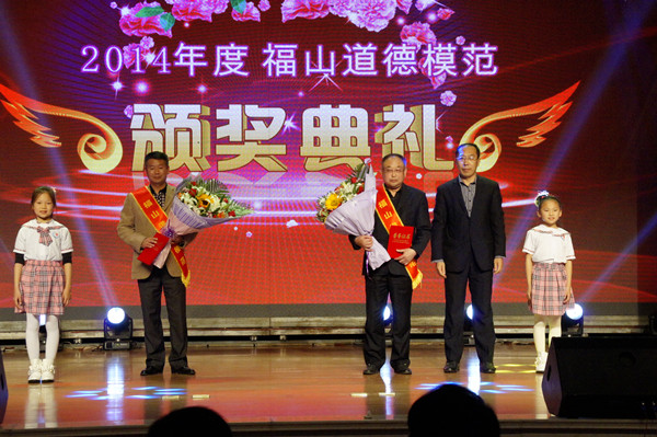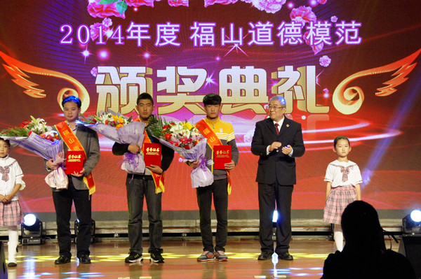 向道德模范致敬,为道德模范加冕。为表彰近年来在“福在福山”文明行动中涌现出的道德楷模,展现全区“四德建设”先模典型风采,11月5日下午,由福山区精神文明建设委员会主办,中共福山区委宣传部及福山区文明办承办的主题为“德行天下 感动福山”2014年度“福山道德模范颁奖典礼”在学院报告厅华彩开启,区委书记姜中二,区委副书记、区长戴龙成,区政协主席于水泉,区人大第一副主任黄健,区委副书记李晓明,区委常委、政法委书记李忠,区委常委、宣传部长李心敏;学院党委副书记、副院长于波出席了颁奖盛典,福山区省市级道德模范代表作为颁奖嘉宾应邀出席了典礼,来自全区各镇街、各部门主要领导及相关人员、汽车制造工程系370名14级学生近千人参加了典礼,共同见证和感悟道德的力量。