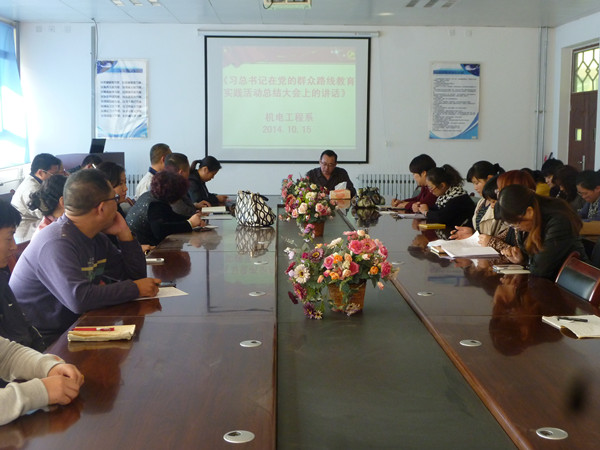 10月15日下午,机电工程系召开“学习习近平总书记在党的群众路线教育实践活动总结大会上的讲话精神”专题学习会。