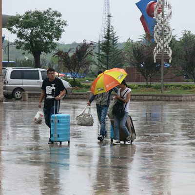 8月24日上午大约11点钟天空开始飘起了小雨,紧接着雨越下越大,给电子工程系的迎新工作带来了新的挑战。