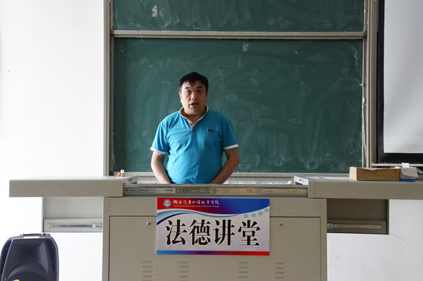 6月4日下午,学院今年第四场道德讲堂和首场法德讲堂活动在阶梯教室5举行。活动由学院宣传部、纪委和保卫处主办,信息与控制工程系承办,本次活动主题为“弘扬社会正气,践行社会主义核心价值观”,学院纪委书记孙乃祝、宣传部部长赵桂平、保卫处处长慕秀成、信息与控制工程系主任张玉芳以及各系分管学生的领导、法德讲堂建设委员会办公室成员出席了活动,信息与控制工程系全体师生参加了活动。