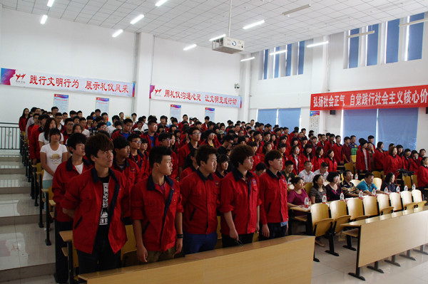 活动在自我反省中拉开了帷幕,一首《公民道德歌》引领大家进入神圣高洁的道德殿堂,接着大家共同观看了我院被评为烟台市“见义勇为群体”学生的视频短片,与会学生慷慨激昂地诵读社会主义核心价值观内容和自我保护三字经,学院保卫处慕秀成处长结合校园实例,讲解了德与法的关系,让大家受益匪浅。最后由学生代表赵荣池、辅导员韩如坤和信息与控制工程系系副主任邢瑞晓分别就本次活动做了精彩的点评。活动结束时,主持人向大家发出倡议:号召大家要以榜样为标杆,以社会主义核心价值观为镜,在日常学习和生活中,自觉践行社会主义核心价值观,勇立时代潮头,做社会主义核心价值观的倡导者、践行者和维护者。