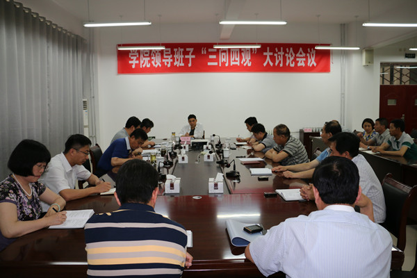 会议由党委副书记、院长尹桂瓒同志主持。他说,按照学院教育实践活动时间安排,今天学院领导班子进行“三问四观”大讨论交流,省、市、区督导组对此提了很多具体要求,在座的各位领导班子成员要联系实际,结合自身情况,谈谈自己对“三问四观”的认识和各自在“四风”方面存在的问题。随后,党委副书记、副院长于波,党委委员、副院长房培玉、孙涛、姜义昌分别结合自身实际,谈了对“三问四观”的认识,深刻剖析了自身存在的问题,并提出了下步改正措施。接着,院长尹桂瓒作了交流。他在谈到对“三问四观”的认识时讲到,我们所从事的是教书育人的工作,最终目的是教育好人,宗旨是为人民谋福祉,在工作态度上要以积极乐观向上的态度对待人生;在工作作风上要把工作当事业。他说,我们践行群众路线的落脚点是办好学,培养德技双馨的蓝领人才;要深化校企合作,提升学生技能素质;要在育好人上倾注心力,努力办好适合学生的教育,为学生的一生奠基,让家庭放心、社会满意;要强化立德树人工作,激发学生向上向善的潜能,把学院建成文明之地、首善之区;要做好服务社会文章,切实搞好联村联户心连心工作,听民忧、办实事、解难题。他从放松党建和思想工作、干部队伍重使用轻培养、工作推进方法欠细致缺指导、制度建设内涵不足等方面谈了需着手整改的问题。在谈到自身存在的问题时他从工作缺乏研究、突出个人意见;没有切实履行党委职责;追求平稳,极少开展批评与自我批评;对教育管理和育人工作一知半解,多停留于浅层次;办学中没有发挥师生的主题作用;作风上存在工作粗浅、号召多;精神上缺乏昂扬向上的锐气;廉洁方面,自我约束不够;个性上,办事急躁,缺乏悉心听取群众意见的自觉意识。在谈到整改措施时,他从加强学习;落实责任,建立台账;加强队伍作风建设;深化人事制度、财务制度、人才培养模式改革、文化育人等方面讲了改革的大致路径。最后,尹桂瓒同志对其他四位领导班子成员的交流进行了集中点评。他首先从都有比较深刻的体会和深层次的思考、都能联系学院和个人分管的工作谈、都有明确的整改措施三个方面进行了肯定。他转而从联系实际还需要再深入和解决问题的办法不足、联系精神状态的内容少、工作作风方面谈的少、良好的领导风范素养欠缺等诸方面谈了存在的问题。