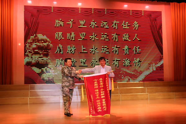 党委副书记副院长于波与预备役七十六师首长交换锦旗