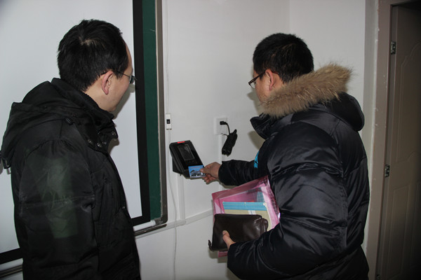 参加培训人员刷卡通过打卡机刷卡采集面部信息签到