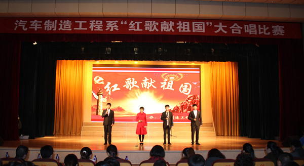 11月20日下午,汽车制造工程系主办的“红歌献祖国”大型合唱比赛在报告厅激情唱响。学生处处长曲健、宣传部部长赵桂平、工会主任王桂凤、汽车制造工程系主任姜善涛及相关部门人员一同观看了大合唱比赛。