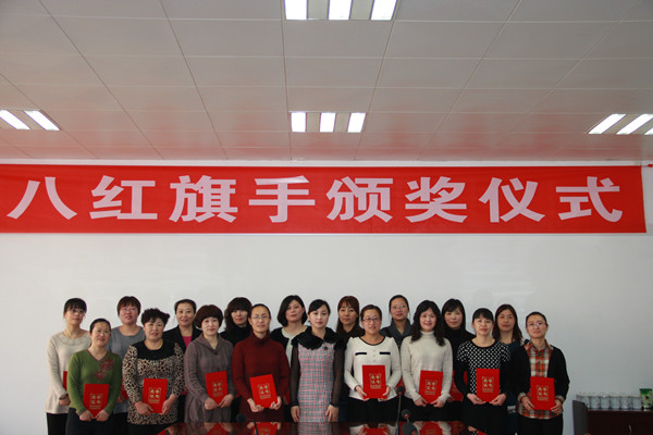 会后,于波副书记为学院20名首批 “三八红旗手”颁发了荣誉证书,并合影留念。