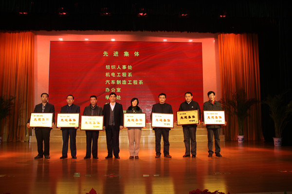 大会由四个部分组成,一改往年由领导轮流上台作总结报告的单一样式:伴着强劲愉悦的开场音乐,首先将学院一年来在“党的十八大指引我们开启新的航程”、“人才培养工作复评推进特色强校”、“6·2·1,探索与培养目标接轨的适合学生成才的新模式”、“质量工程喜获丰收”、“技能大赛满载而归”、“科研工作又上层楼”、“终生难忘和受益的春季田径运动会”、“艺术节唤醒人性之美”、“队伍建设数量和质量双提高”、“永不褪色的文明奖牌”十个主要方面的工作亮点做成宣传片,全院教职工一起回顾了一年来的亮点成绩。然后学院隆重表彰了年度先进集体组织人事处等15个、先进个人张化迎等186人,五位院领导分别为先进代表颁奖。