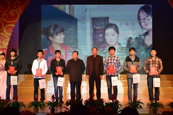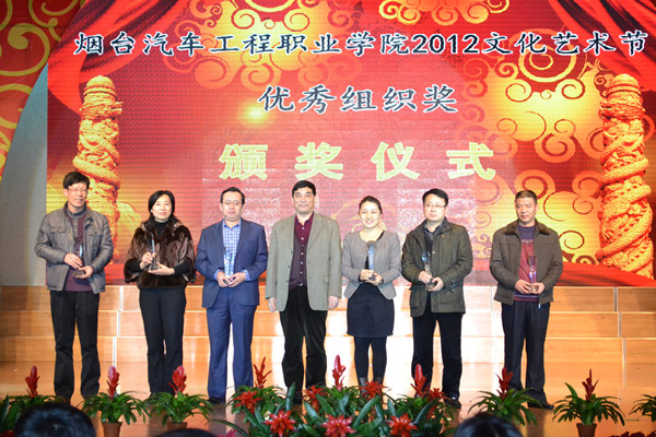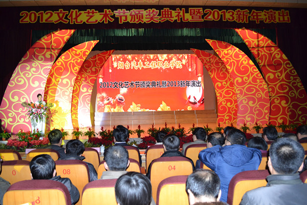 12月31日下午,“金蛇舞动向未来”2012年文化艺术节颁奖典礼暨2013新年演出在学院报告厅举行。院长尹桂瓒,党委副书记于波,副院长房培玉、孙涛、姜义昌出席了颁奖典礼,富士康科技集团邹德利专理、樊增科长,上海通用东岳汽车有限公司董玉辉经理,浪潮乐金数字移动通信有限公司苏填洙副总经理、人事部王垣部长,烟台矢琦汽车配件有限公司杨炳琪副总经理、鹿珍科长应邀参加了典礼。学院副科级以上领导干部及大专师生参加了颁奖仪式。