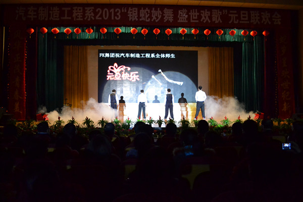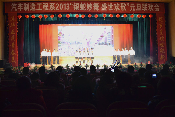 风华正茂青春美,蛇岁呈欢世纪新。12月28日下午,学院报告厅华灯璀璨、热闹非凡,由汽车制造工程系主办的“银蛇妙舞盛事欢歌”元旦联欢晚会在此隆重举行。院长尹桂瓒,党委副书记于波,副院长孙涛、姜义昌,以及学院各部门领导和全系师生齐聚一堂,喜迎新年。