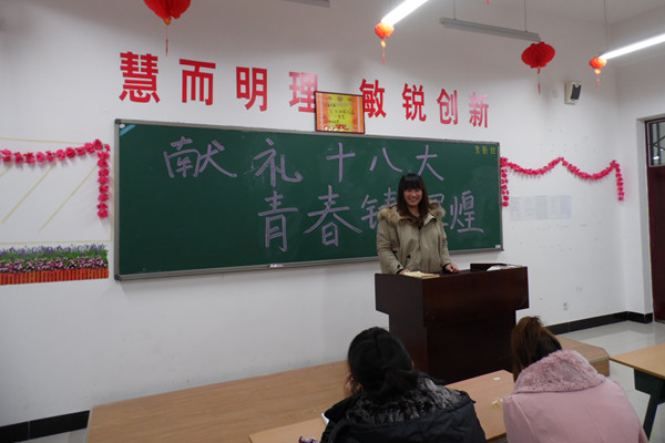 在班会上,各班主任首先向学生介绍了历届党代会的召开时间和重大决定,带领大家一同回顾了党的光辉历程,重点讲解了“十八大”召开的时代背景及历史意义。之后,同学们观看了讲述中国共产党奋斗历史的纪录片,围绕“铭记党恩,感悟青春”展开讨论。结合自身成长经历,大家踊跃发言,畅谈了对党的认识、对伟大祖国的拥护之情。最后,由学生代表朗诵诗歌《青春激扬跟党走》,大家齐声高歌“没有共产党就没有新中国”,深情表达对“十八大”的庆贺与祝福。