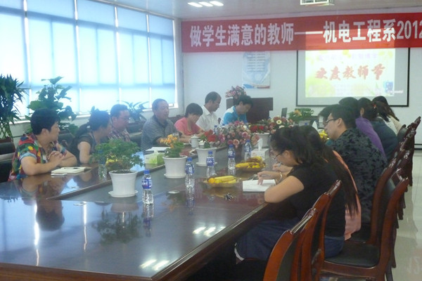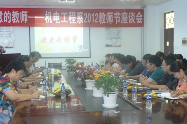 9月7日下午,机电工程系在B区4号教学楼二楼会议室召开庆祝教师节座谈会。学院副院长孙涛、学院组织干部科科长周桂英应邀出席了座谈会。会议由机电工程系主任李世一主持,机电工程系领导及二十余位教师参加了座谈。