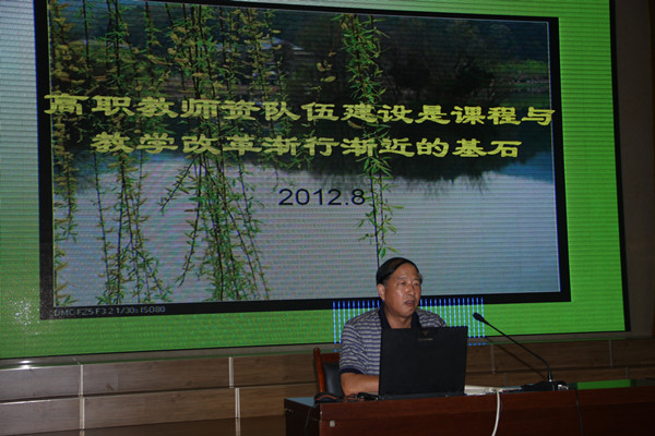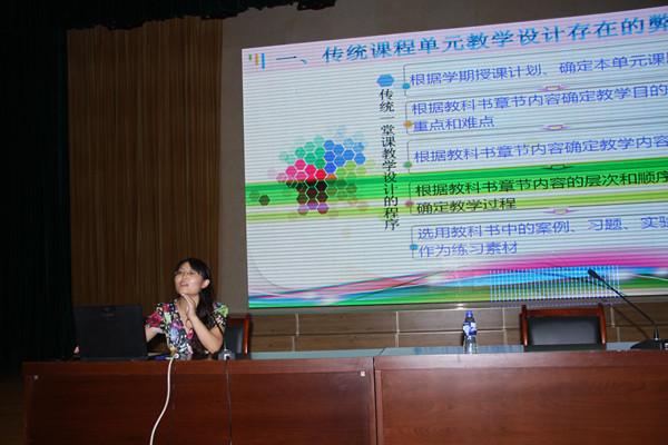 本次研讨会的主题是全面开展“6•2•1”课程教学模式改革,深入推动课程建设,有力提升教师素质,切实提高教学质量。研讨会上,梁文鹏处长从剖析传统教学整体设计的做法及弊端入手,就“6•2•1”课程教学整体设计的原则、程序和内容等方面,对“6•2•1”课程教学整体设计做了生动地讲解和深入地阐述;教务科任利华副科长则运用生动具体的范例,对“6•2•1”课程单元教学设计的原则和基本内容做了详细的解读。最后,副院长孙涛以“高职教师师资队伍建设是课程与教学改革渐行渐近的基石”为题目,以课程改革对教师职业能力的要求为出发点,从改善教师的生存状态和激发教师创新能力等方面,倡议全院教师以课程改革为契机,加强专业学习和职业素养,促进自身的快速成长。