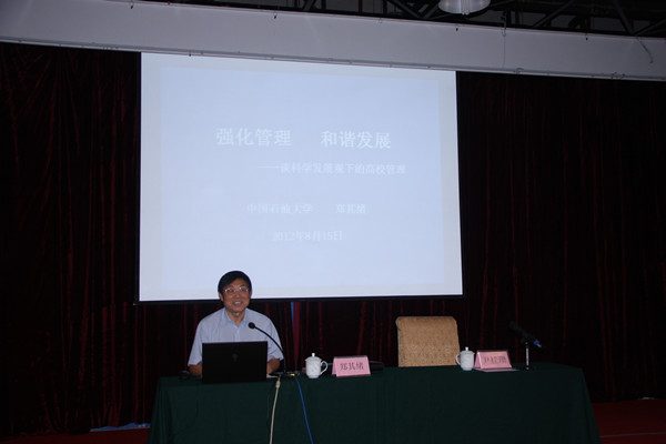 本次培训围绕高校管理、领导艺术和高职教育理念三个方面展开,先后邀请了3位专家为全体干部作报告。原中国石油大学(华东)党委书记郑其绪教授作了题为《强化管理,和谐发展——谈科学发展观下的高校管理》的报告,从高校管理的思考背景和如何强化管理两方面对当前高校管理问题进行了深入阐述,并提出了具体的措施。原山东教育学院研究员、教授李甲奎针对高校中层干部理念与发展思路问题作了题为《提高综合素质,适应岗位要求》的报告,从分析素质的基本内涵入手提出了管理人才应具备的素质特征,为高校中层干部提升自身素质提供了理论支撑。上海市教科院副院长马树超教授所作的报告题目是《现代职业教育体系与高职教育改革发展》,从现代职业教育体系的独特视角分析了高职教育改革和发展的方向、思路和具体举措。