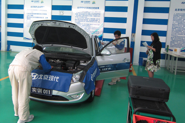 本次考核分为理论与实践两部分。理论部分考核的是北京现代企业文化、北京现代汽车电气检修技术、北京现代汽车底盘检修技术、北京现代汽车维护技术等六方面内容。实践部分考核的是汽车维护、前大灯的检测、正时皮带的拆装、气缸压缩压力的检测、节气门位置传感器的故障诊断、节气门体的清洗、制动器的检修七个项目。学员毕业考核合格后,由北京现代有限公司售后服务部组织招聘会,向山东省内的北京现代4S店推荐就业工作。届时学员和用人单位将进行面对面的双向选择。6月27日北京现代汽车有限公司领导将对北京现代班新生进行面试,并且选拔出30名学员作为第二届北京现代班学员。