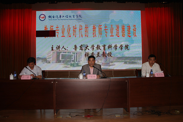 会上,鲁东大学教育科学学院教授、硕士生导师张香兰应邀为全体教职员工作了题为《教师专业化时代的教师专业道德建设》的报告。张香兰教授就教师专业化时代的教师专业道德建设问题进行了深入的阐述和分析,内容丰富,例证生动,见解深刻,立意高远,听后使全院教师深受教育和启发。