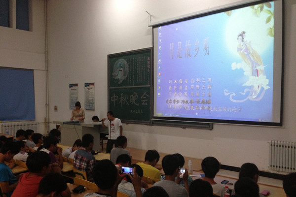 中秋佳节来临之际,为了让2013级新生感受到学院大家庭的温暖,让每位不能回家过节的留校生过上一个祥和快乐的中秋, 9月19日晚上,电子工程系团委在第七阶梯教室举行了“喜迎新生•缘聚中秋”文艺晚会。所有住校学生参加了本次晚会。