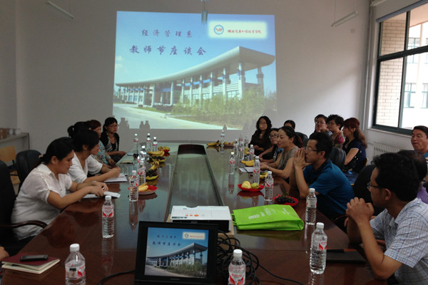 9月9日,经济管理系在系会议室召开教师节座谈会,大家在欢声笑语中喜迎第29个教师节。