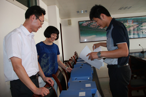 赵桂平部长陪同福山区委办公室督查科科长刘振华、副科长胡江平检查我院道德讲堂建设文档材料
