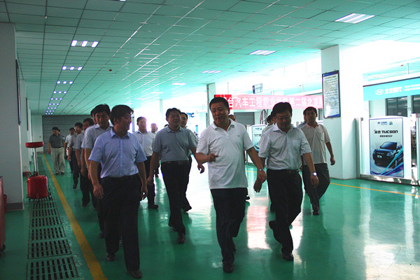 党委副书记、副院长于波陪同莱芜市钢城区委书记胡文朴、区长张钊一行参观实训中心汽车车间