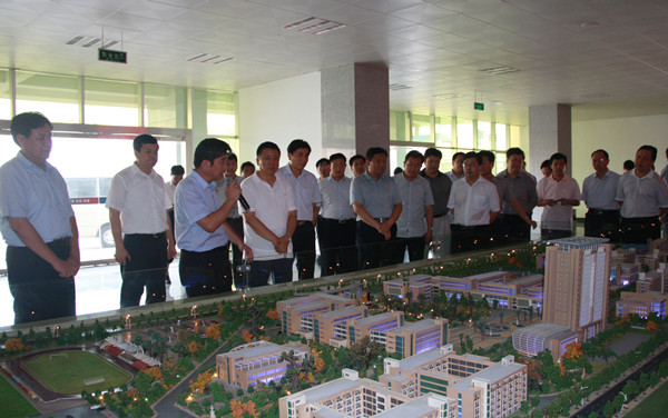 在学院沙盘处,党委副书记、副院长于波向客人简要介绍了我院的建设规模、规划远景,福山区政府对学院建设的支持和学生的就业情况,随后,客人在党委副书记、副院长于波的陪同下到实训中心参观,在实训中心一楼大厅听取了工作人员的情况介绍后,到实训车间实地查看了实训条件。