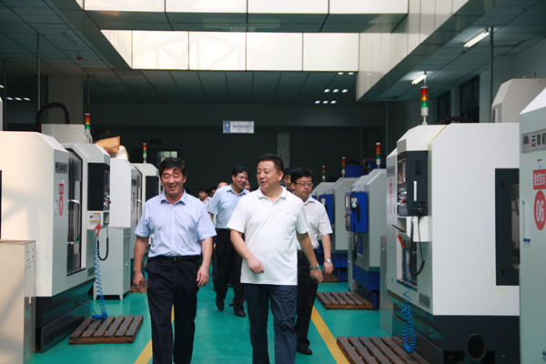 党委副书记、副院长于波陪同莱芜市钢城区委书记胡文朴、区长张钊一行参观实训中心机电车间