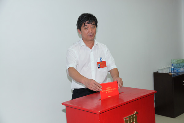 党委副书记、副院长于波正在中国共产党烟台汽车工程职业学院第一次代表大会上投票