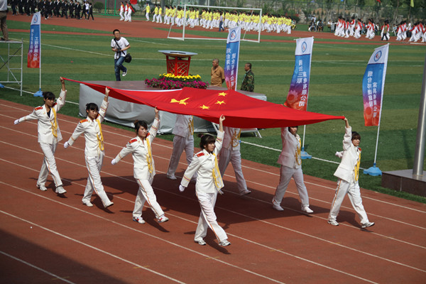 在庄严的升国旗、奏国歌仪式后,尹桂瓒院长致开幕词,强调每年一度的田径运动会,是我们学院具有重要意义的一次盛会,是提高办学水平的一次重大促进,是师生精神面貌的一次集中展示,是我院素质教育和体育教学新成果新风采的一次集中检阅;随后,运动员代表赵智广、裁判员代表于礼豪分别向大会宣誓。
