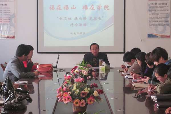 4月24日下午,机电工程系第一次“福在福山,福在学院”大讨论在该系会议室举行,围绕“学院发展与个人发展的关系以及我为创名校应该做点什么”的问题,大家展开了深入讨论。