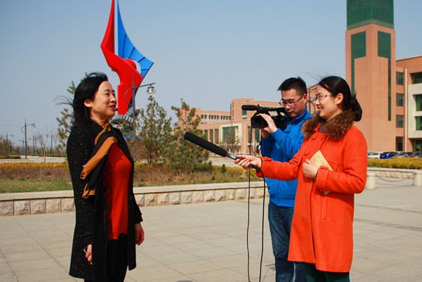 见义勇为学生所在系系主任张玉芳接受福山电视台记者采访
