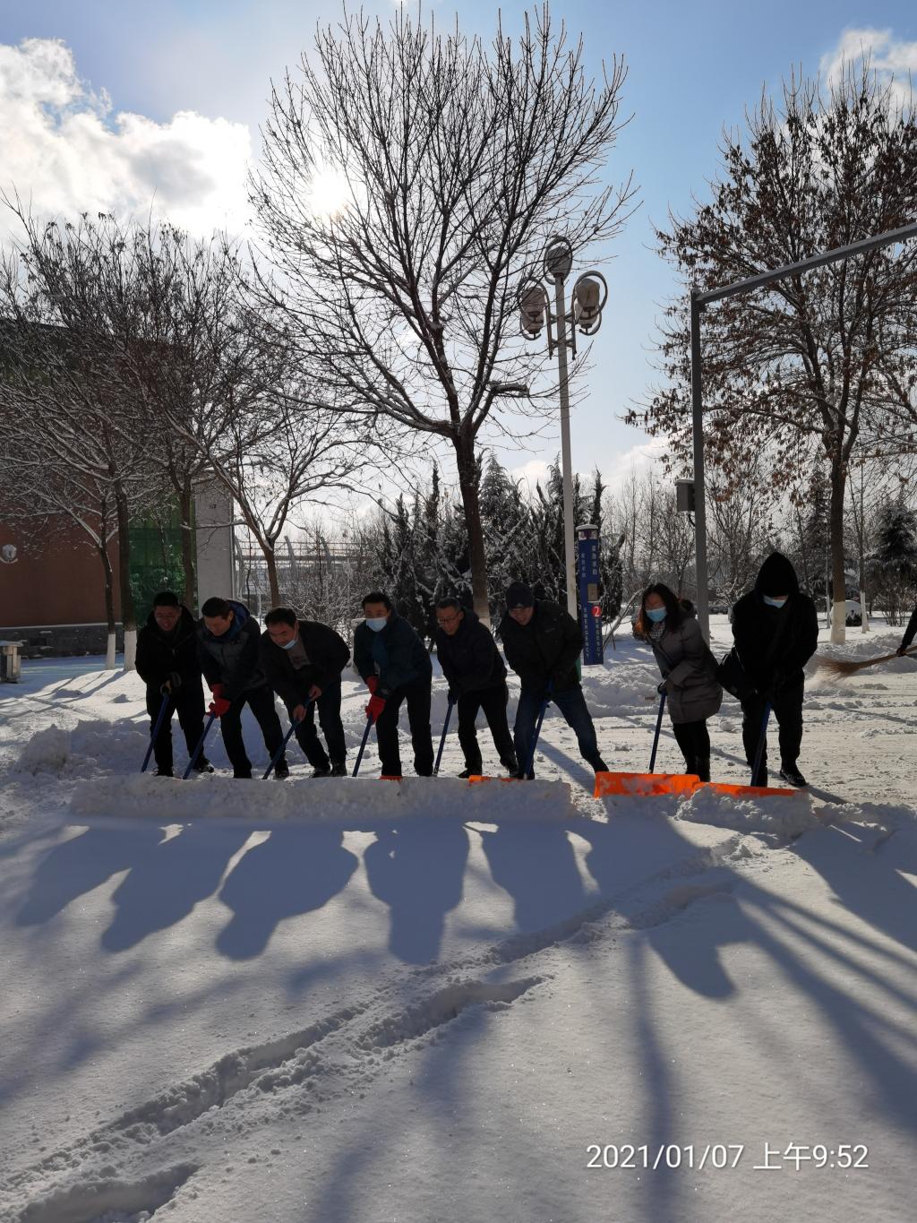 为了尽快扫除积雪与冻冰,畅通校园道路,消除安全隐患,电子工程系教师积极响应学院号召,克服返校途中的种种困难,纷纷到校清扫积雪。教师们不顾严寒,齐心协力,扫雪的扫雪,铲雪的铲雪,以最快速度清理出一条条安全通道,为教职工提供了安全的环境,学院就在这样的忙碌和欢笑中脱下了厚重的银装,换上整洁的外衣。