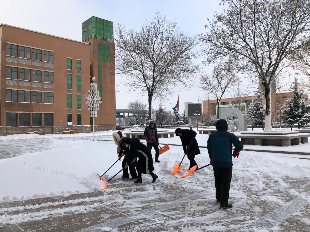 一场寒冷的大雪融化在电子工程系教师铲冰扫雪的热情之中,学院的各条主干道又恢复了畅通、洁净,雪日里的校园也因电子工程系教师的这份责任担当而更加温馨、美丽。