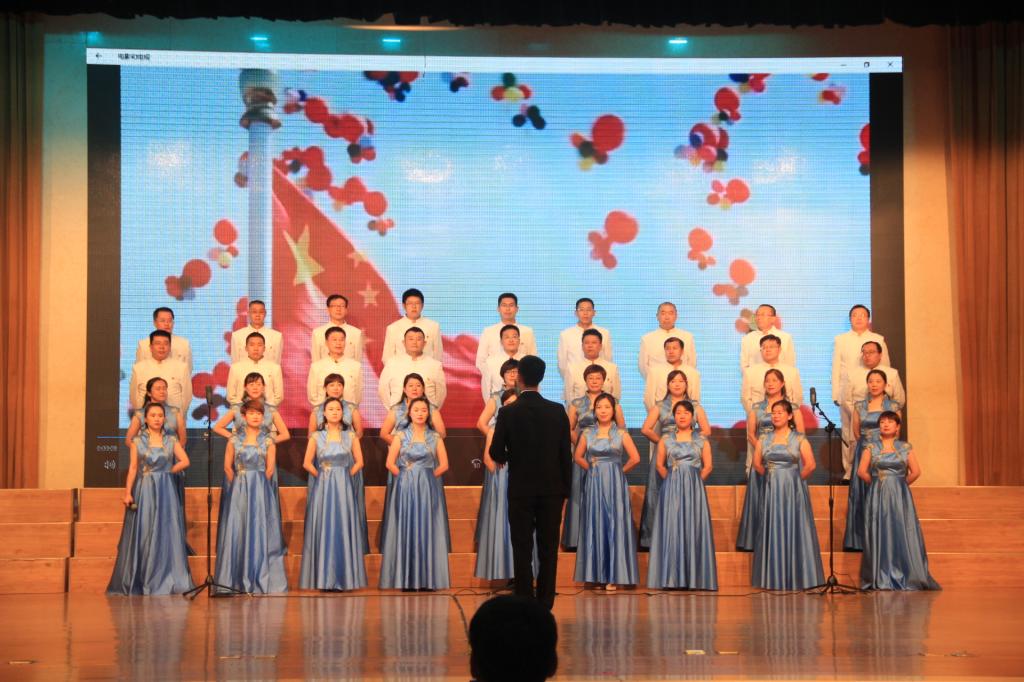 参赛队伍着装整齐,精神饱满依次上台演唱。一首首经典的革命歌曲,让我们想起那些难以忘怀的战争岁月,想起社会主义建设火红的年代,中国共产党人不畏艰难险阻,不惧流血牺牲,“保卫黄河、保卫全中国”。“没有共产党,就没有新中国”是亿万中华儿女的心声,“唱支山歌给党听”抒发了对党的忠诚拥戴。进入新时代,中国人民团结一心,意气风发,我们昂首走在中国特色社会主义的大道上,一代又一代的中国共产党人“不忘初心,继续前进”,凝心聚力为“实现中华民族伟大复兴的中国梦”而不懈奋斗。