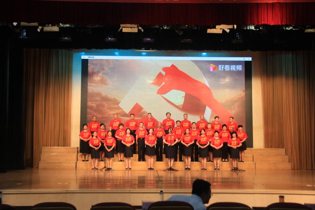 节目最后,学院老干部党总支离退休党员和学生合唱团精神抖擞、闪亮登场,用《唱支山歌给党听》和《灯火里的中国》表达了对党和祖国的热爱。