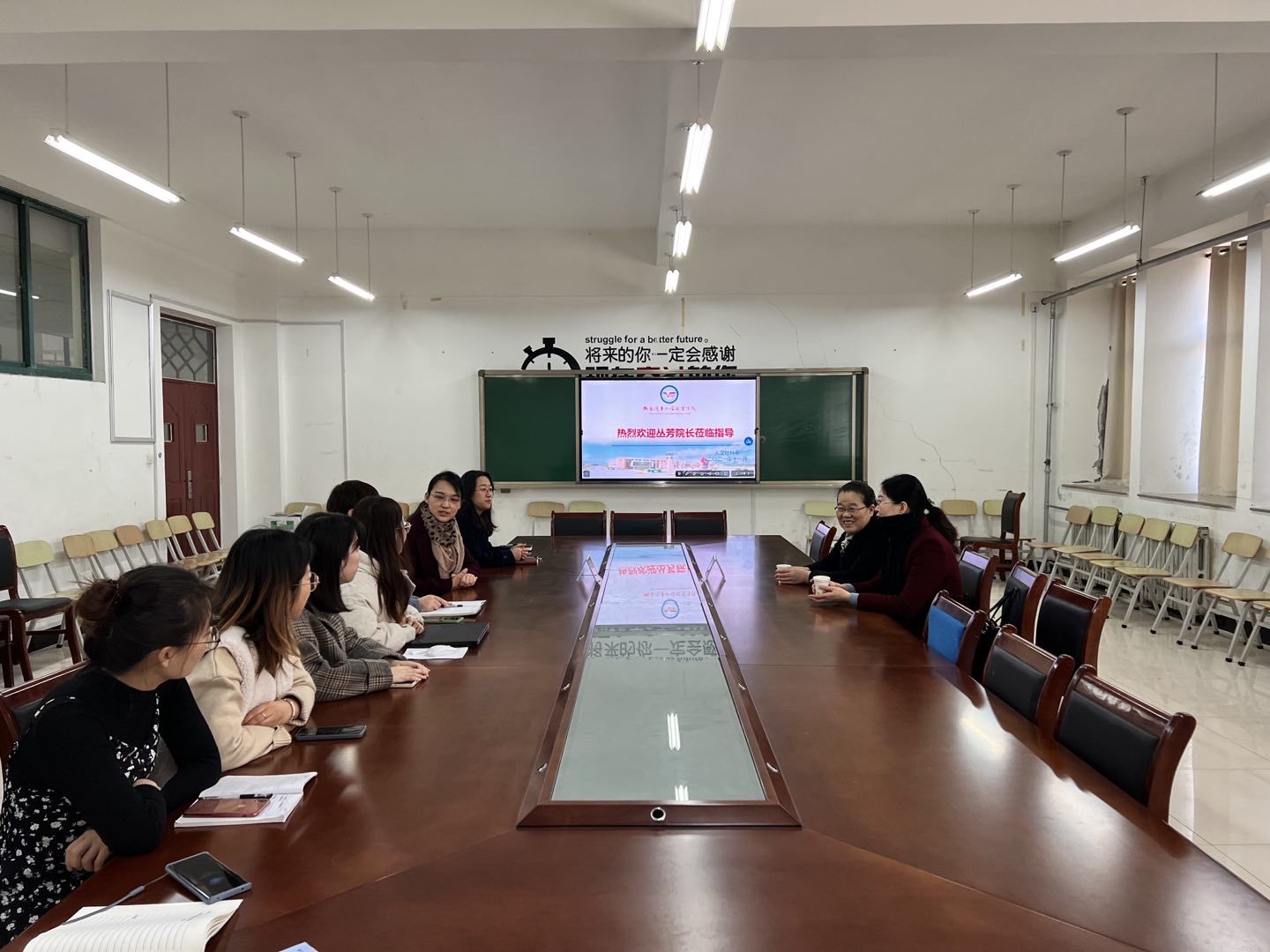 在听取了人文社科系的介绍和婴幼儿托育服务与管理专业、学前教育专业介绍后,丛芳院长对两个专业给与了较高的评价。她认为,国务院办公厅在2019年4月发布了《3岁以下婴幼儿照护服务发展的指导意见》,该意见明确指出,我国要建立完善的婴幼儿照护服务体系,要促进婴幼儿照护服务的发展。这个意见的出台,将极大的促进婴幼儿照护机构的发展,届时会需要大量的婴幼儿托育及学前教育的相关从业者,我们的专业应时而生,学生未来就业前景非常乐观。两个专业的课程包含了系统的学前教育和儿童生理卫生等相关课程,课程设置较合理。后续,学院和妇幼保健院可以就学生实习、师资培养等方面加强交流。