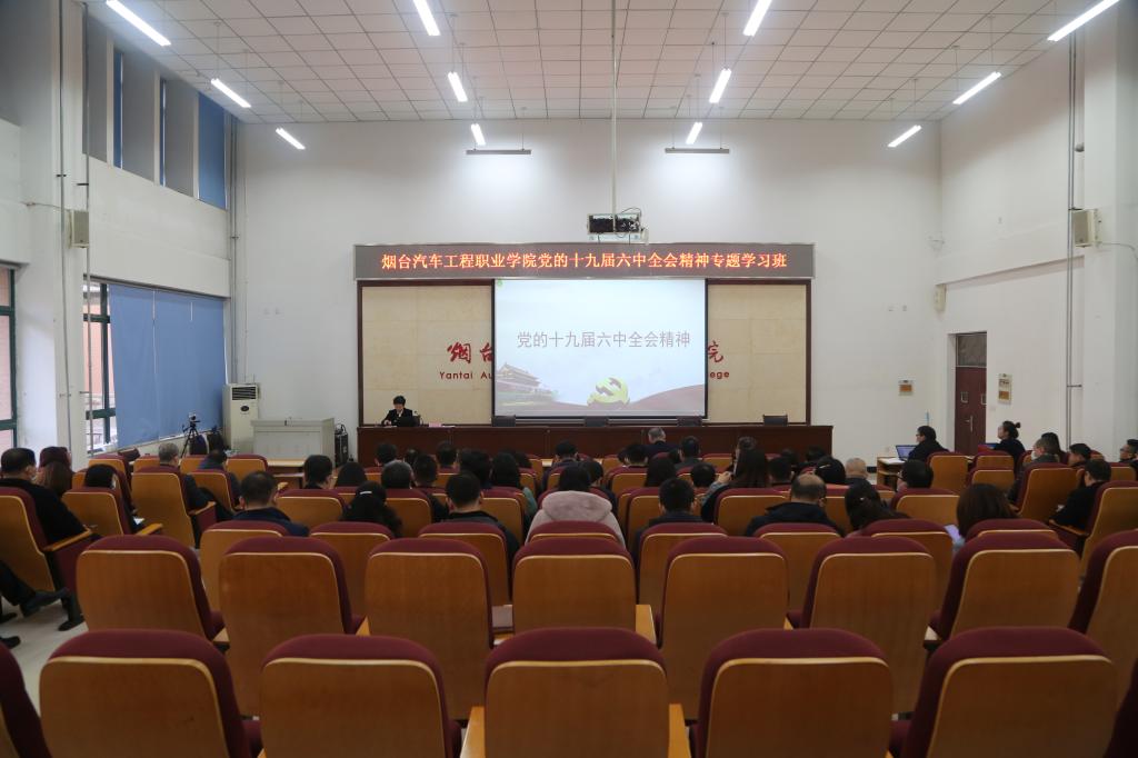 为深入学习宣传贯彻党的十九届六中全会精神,深化拓展党史学习教育,12月14日上午,学院在B1第一会议室举办党的十九届六中全会精神专题报告会暨专题学习班开班仪式。市委宣讲团成员、党委书记李翠玲同志作专题报告。党委委员、副院长杜旭东,党总支(党支部)书记、副书记、副处级以上干部72人参加开班式。