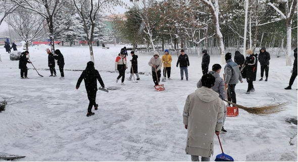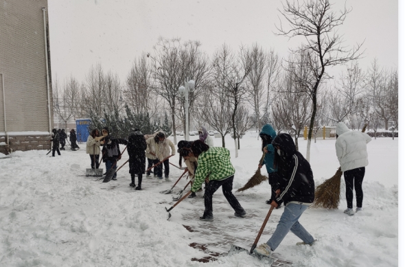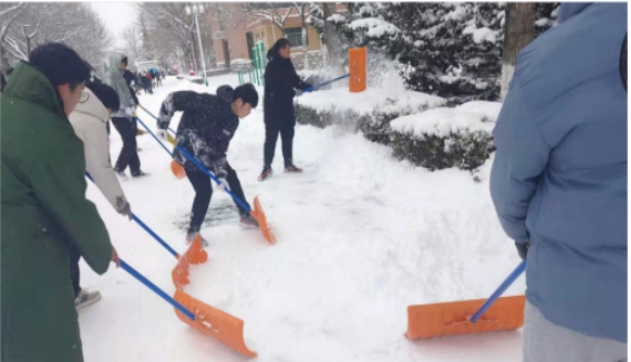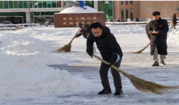 风雪中,我们看到了校园里的不同身影,有领导、有教师、有学生,有保卫、有物业……他们顶风冒雪,用自己的辛勤付出清除了道路积雪,保障了师生出行,保障了师生的正常学习生活,在2021年岁末,为校园增添了一道亮丽风景线。