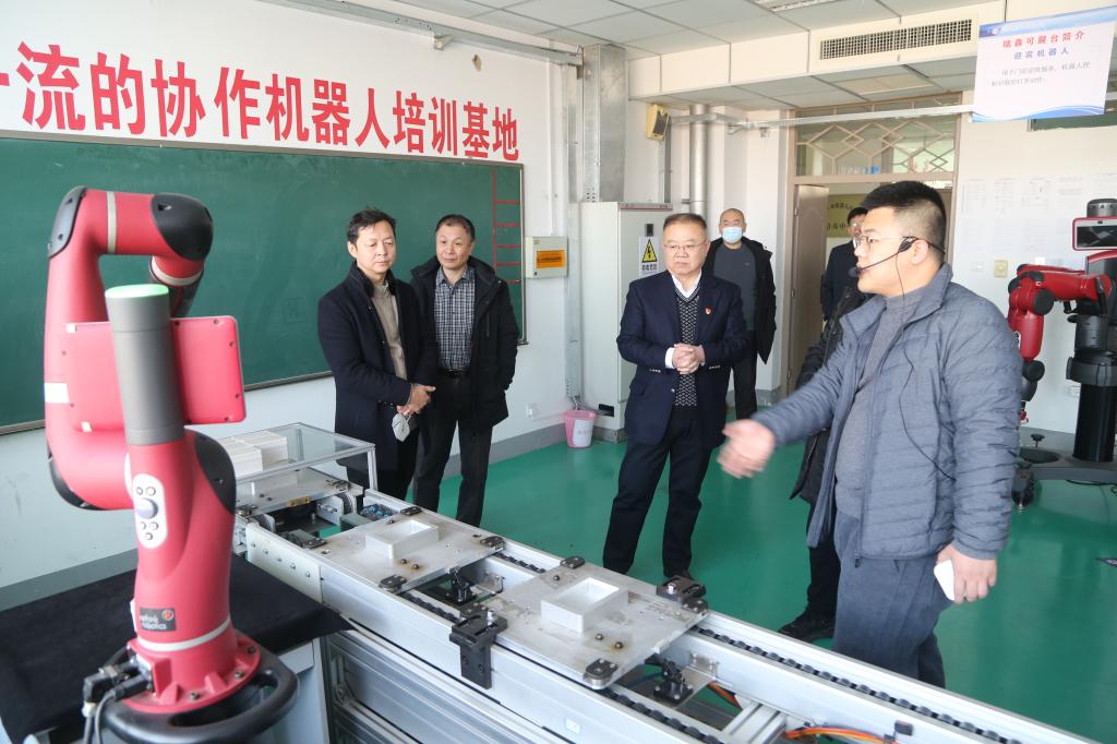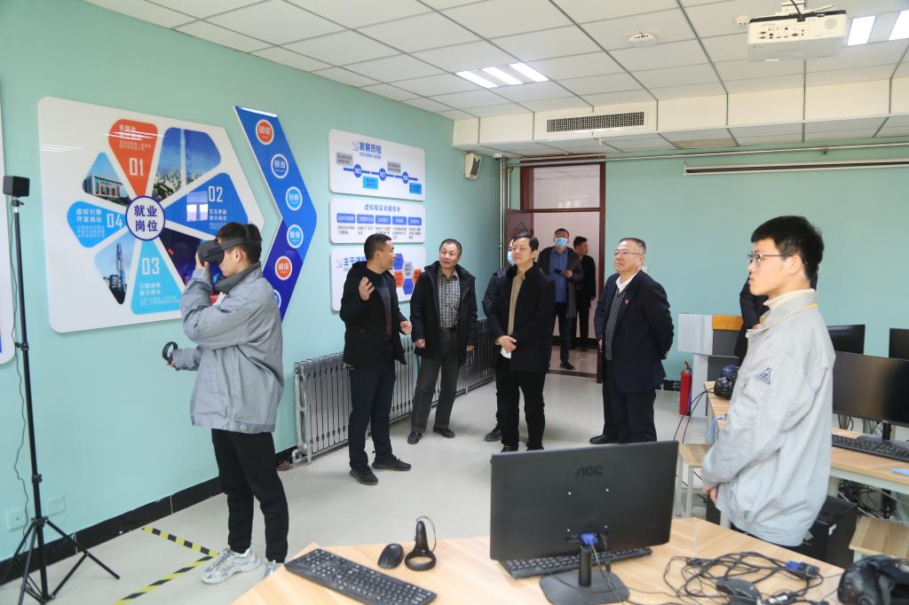 为进一步深化产教融合、促进企校合作,完善高技能人才培养政策,优化高技能人才培养体系,打造高技能人才培养高地,为经济高质量发展提供人才支撑,2月24日下午,山东省设备管理协会副秘书长、调研组组长杨双健等一行3人,在市工信局吴楠科长陪同下到我院考察调研 “VR+制造”智慧学习工场公共实训基地。