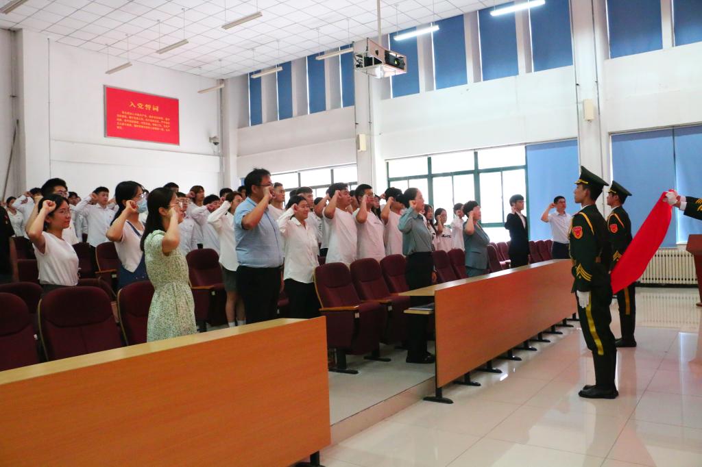 “我志愿加入中国共产党,拥护党的纲领,遵守党的章程……为共产主义奋斗终身,随时准备为党和人民牺牲一切,永不叛党!”在领誓人的领誓下,全体预备党员举起右手,握拳过肩,面向党旗庄严宣誓,许下为共产主义奋斗终身的铮铮誓言。