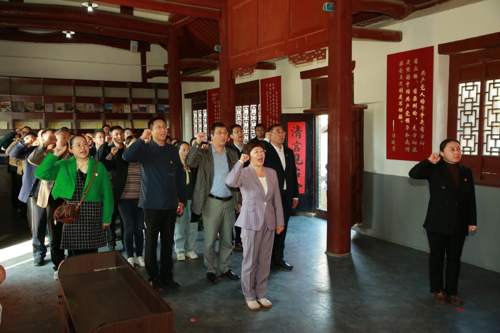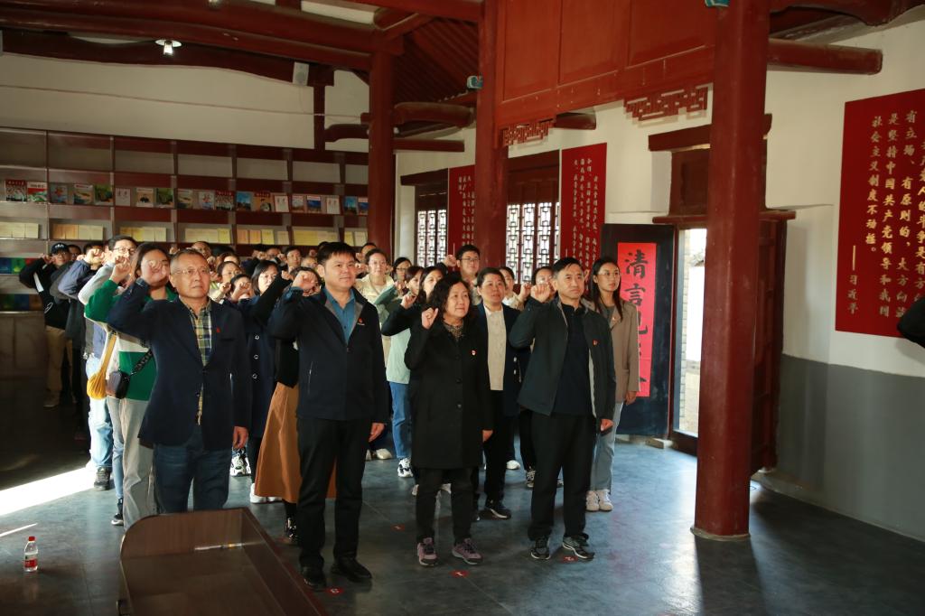 全体党员跟随着讲解员的引领和讲解,依次参观了“峥嵘岁月 烽火摇篮”“忠诚信仰 勇于担当”“薪火相传 众志成城”“灵活机动 战场练兵”“患难与共 水乳交融”“抗大精神 永放光芒”等六大单元展室,大家认真聆听讲解,仔细驻足观看革命文物、珍贵史料,聆听革命先烈英雄事迹。一幅幅弥足珍贵的历史照片、一段段革命先辈的感人事迹充分彰显了胶东革命精神和共产党人的初心使命,让全体党员亲身感受了“熔炉中锤炼,斗争中学习”的抗大精神,受到了一次震撼心灵的思想洗礼和党性教育。全体党员在党旗前重温入党誓词,一句句铿锵有力的铮铮誓言,彰显了学院人忠实践行初心使命和踔厉奋发建功新时代的坚强决心。