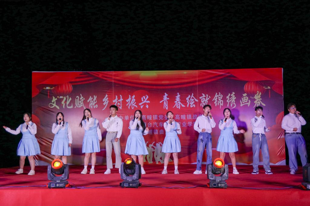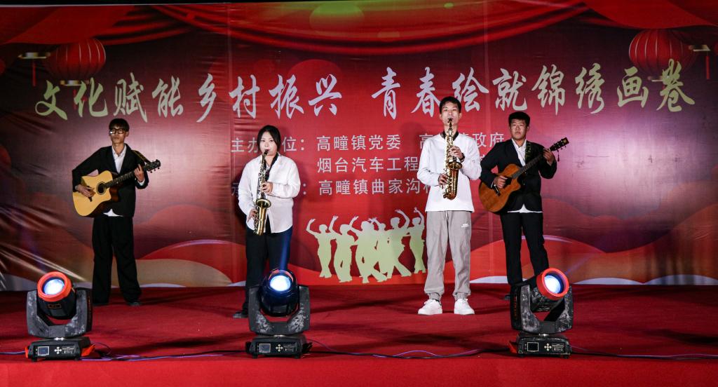 文艺下乡村,惠民暖人心。为促进乡村精神文明建设,丰富群众精神文化生活,10月12日晚,由福山区高疃镇党委、政府,烟台汽车工程职业学院主办的“文化赋能乡村振兴,青春绘就锦绣画卷”文化惠民演出在驻点帮扶村曲家沟村如期举办,学院党委副书记曲耀春、高疃镇党委副书记陈锋以及相关部门负责人与现场近400位村民共同观看演出,一起回望激情岁月,用心感受过去、真情讴歌聚会,畅想美好未来。
