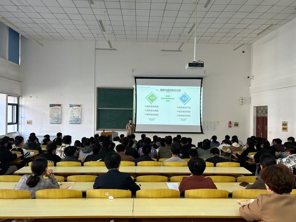 曲耀春、付双美一行听取了马克思主义学院思政课教师郁晓彤为机电工程系2023级机电一体化1、2、3班学生讲授的《思想道德与法治》。授课过程中,郁晓彤从习近平总书记在党的二十大报告中关于青年的责任与使命重要讲话为切入点,结合学生所学专业及关心关注的话题,系统讲解了如何科学把握理想与现实的辩证统一,在实现中国梦的实践中放飞青春梦想。